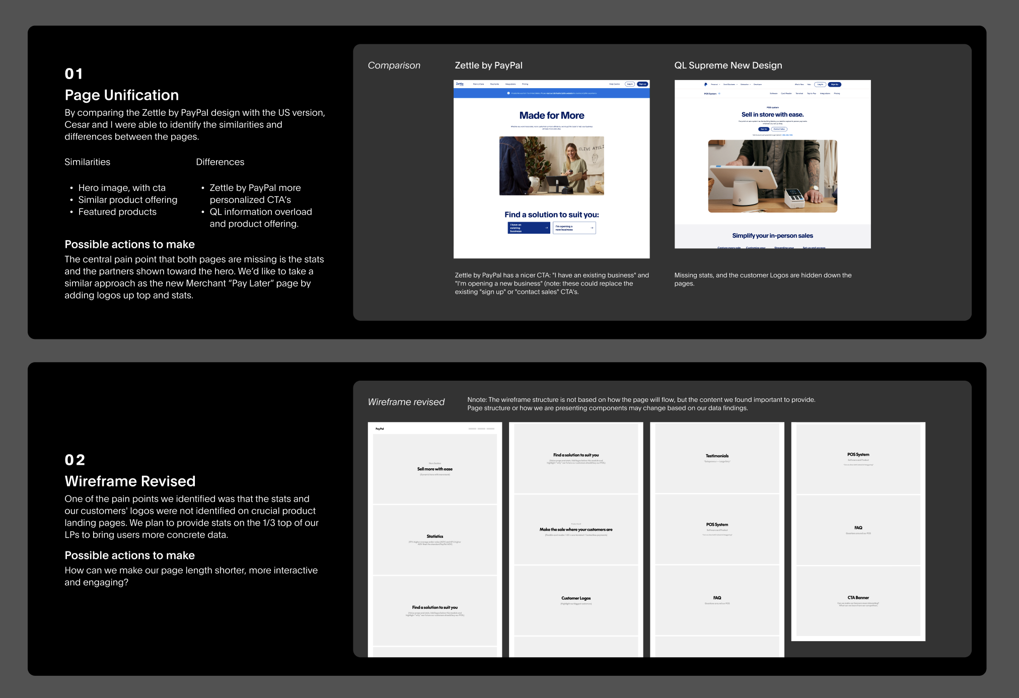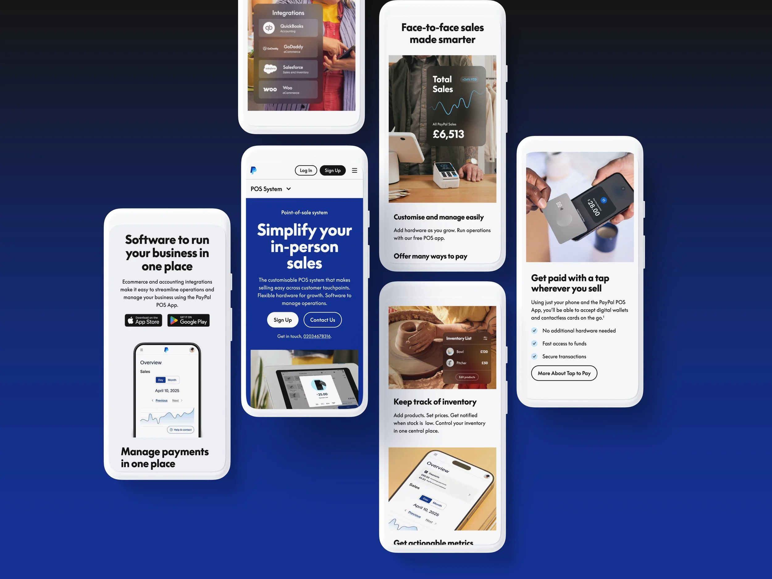 The goal was to unify the Zettle experience within the PayPal ecosystem and enhance the product narrative for merchants seeking POS solutions. The team focused on consolidating Zettle into cohesive product pages that align with PayPal’s global design system, prioritizing the UK pages first to facilitate international scalability. This approach required close collaboration across global teams.